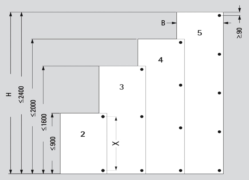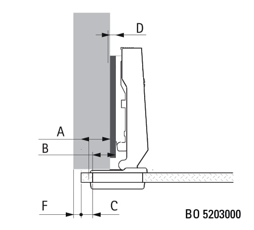 By combining the hinge arms BO 5203000/01 with the cross mounting plates BO 5203013/14/15, support dimensions of different sizes can be achieved.