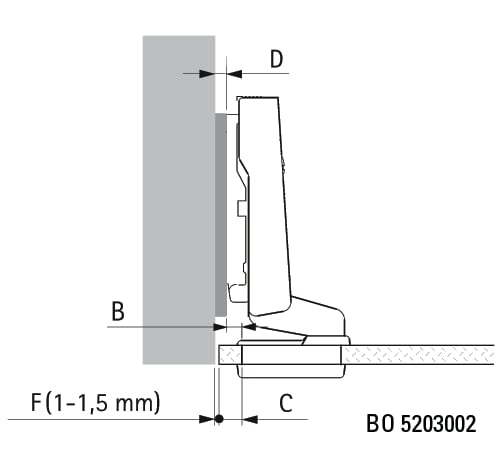 By combining the hinge arms BO 5203000/01 with the cross mounting plates BO 5203013/14/15, support dimensions of different sizes can be achieved.