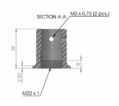Reinforced version of the 90° wall connector for connecting the Round 19 reinforcement bar to a fixed wall. This connector has 2 clamping screws for a secure connection to the reinforcement bar and an enlarged screw-on surface for better force distribution on the wall.
