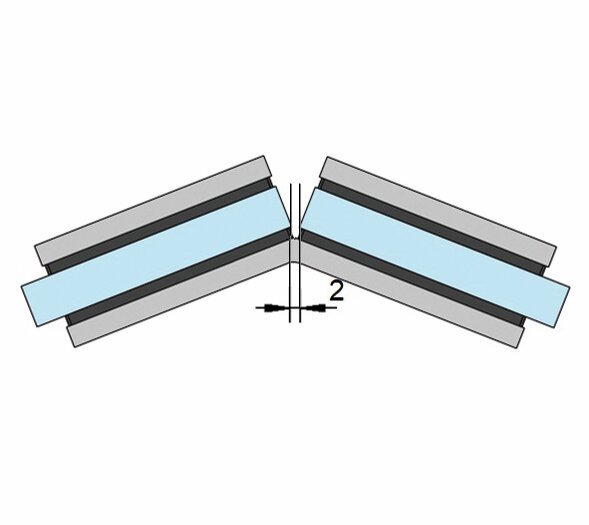 Bilbao 90° glass-glass angle connector for connecting two fixed glass side panels. Only simple glass drill holes are required in the glass panes