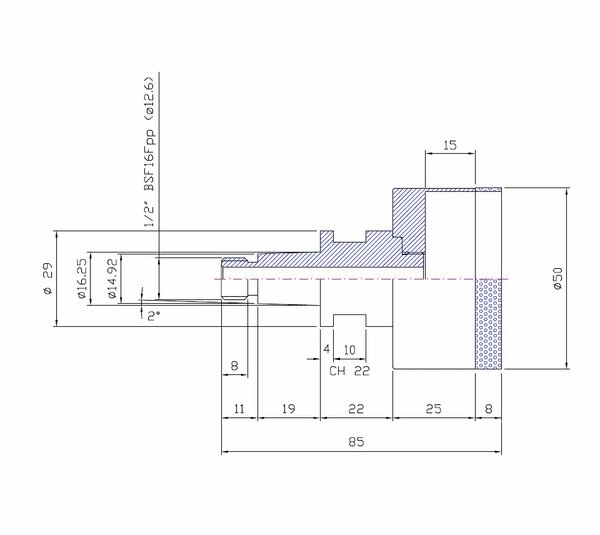 The diamond hollow drill with an external fitting (Habit) R ½ inch is made of steel covered with protective lacquer and a diamond coating of sintered material.