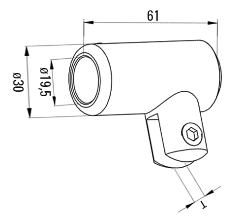 This adjustable glass connector is clamped onto the upper glass edge of the fixed glass side panel and forms the lateral end of the reinforcement bar. Suitable for the Round 19 reinforcement bar.