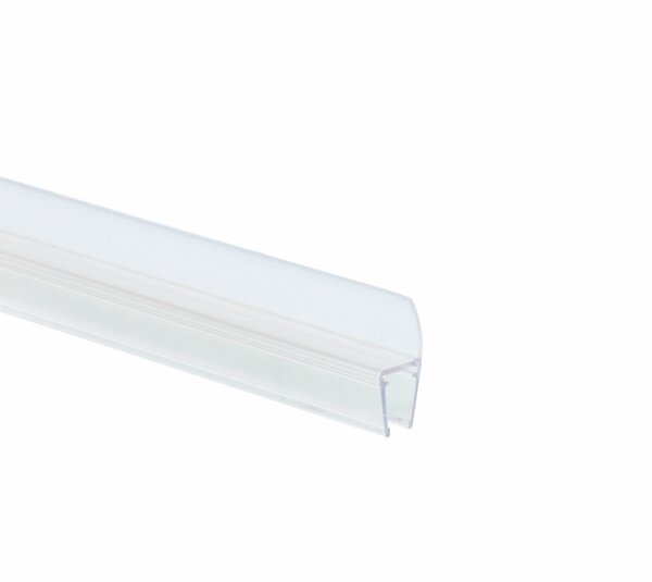 Shower door seals with water deflector are suitable for both the hinge side and the underside and are used for both single-action and swing doors. The seal is simply slipped onto the edge of the glass. The wide range of shower door seals offers ideal sealing options for every shower enclosure. All seals are made of durable, transparent PVC with a soft sealing lip. Push-on seals also consist of a rigid clamping part, self-adhesive seals have pre-mounted 3M adhesive tape.